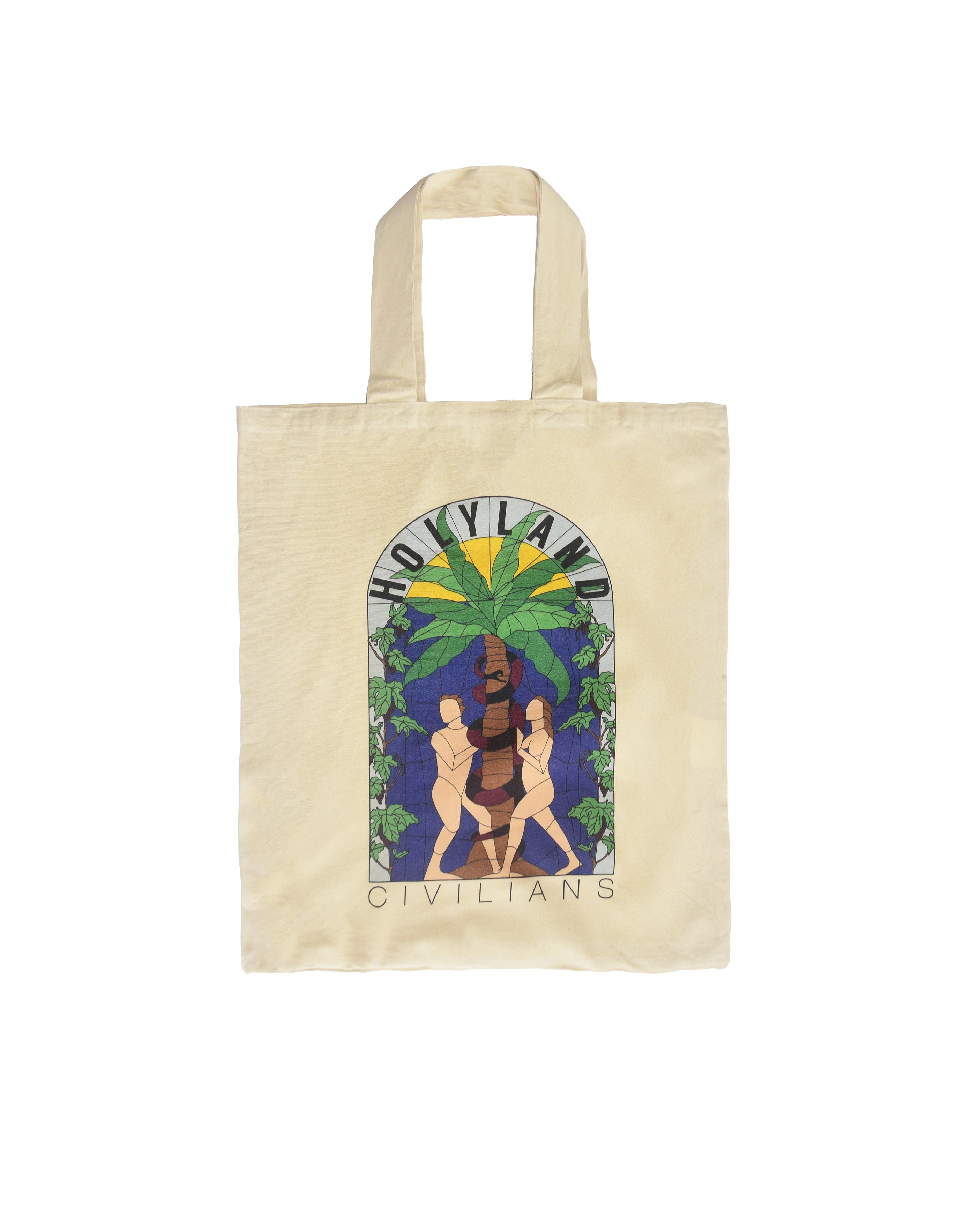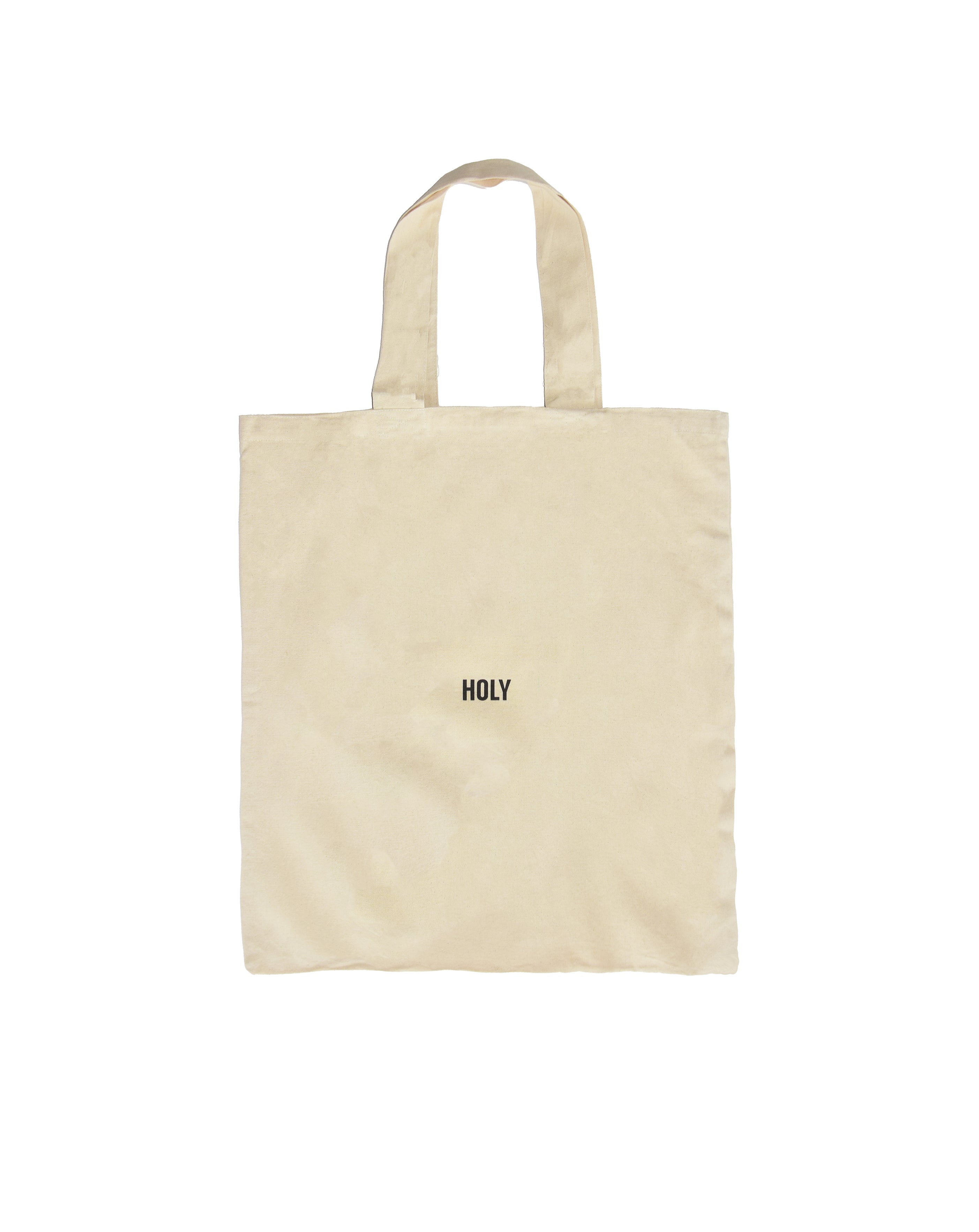 This extra-large tote bag, with our iconic Adam & Eve logo on one side, and a small HOLY logo on the other side.